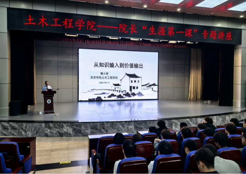 在院长“生涯第一课”环节中,机械工程学院院长张毅教授以“以匠心筑梦,以实干启新程”为题,鼓励新生在校期间突破能力短板,提升团队协作与沟通表达能力,希望大家以“启航”明确方向、以“融合”增强本领、以“突破”促进成长,书写精彩青春篇章。土木工程学院院长傅少君教授则从夯实大一基础、构建中期能力矩阵、树立长期职业愿景等方面,为新生提供了系统的“生涯启航行动计划”。设计艺术学院院长臧卫军教授引导学生从“知识输入”转向“生涯输出”,破除“唯分数论”的思维定式,强化职业生涯价值意识。会计学院融合行业专家讲座、“生涯第一课”与“开学第一课”等多种形式,将职业素养与行业使命教育有机融合,聚焦“会计+科技+战略”的跨界能力,为新生搭建从校园到职场的认知桥梁,并借助“西京学子四年成长职业规划图表”,将专业学习、实习实践与证书考取相结合,为学生的职业规划提供清晰指引。
