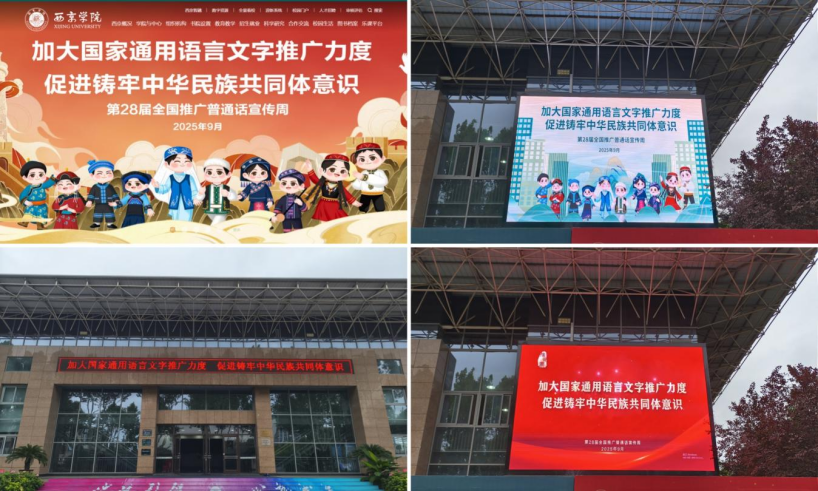 西京网讯:在第28届全国推广普通话宣传周期间,我校围绕“加大国家通用语言文字推广力度,促进铸牢中华民族共同体意识”主题,组织开展系列宣传活动。学校制定专项活动方案,通过多种形式提升师生对国家通用语言文字的运用能力。