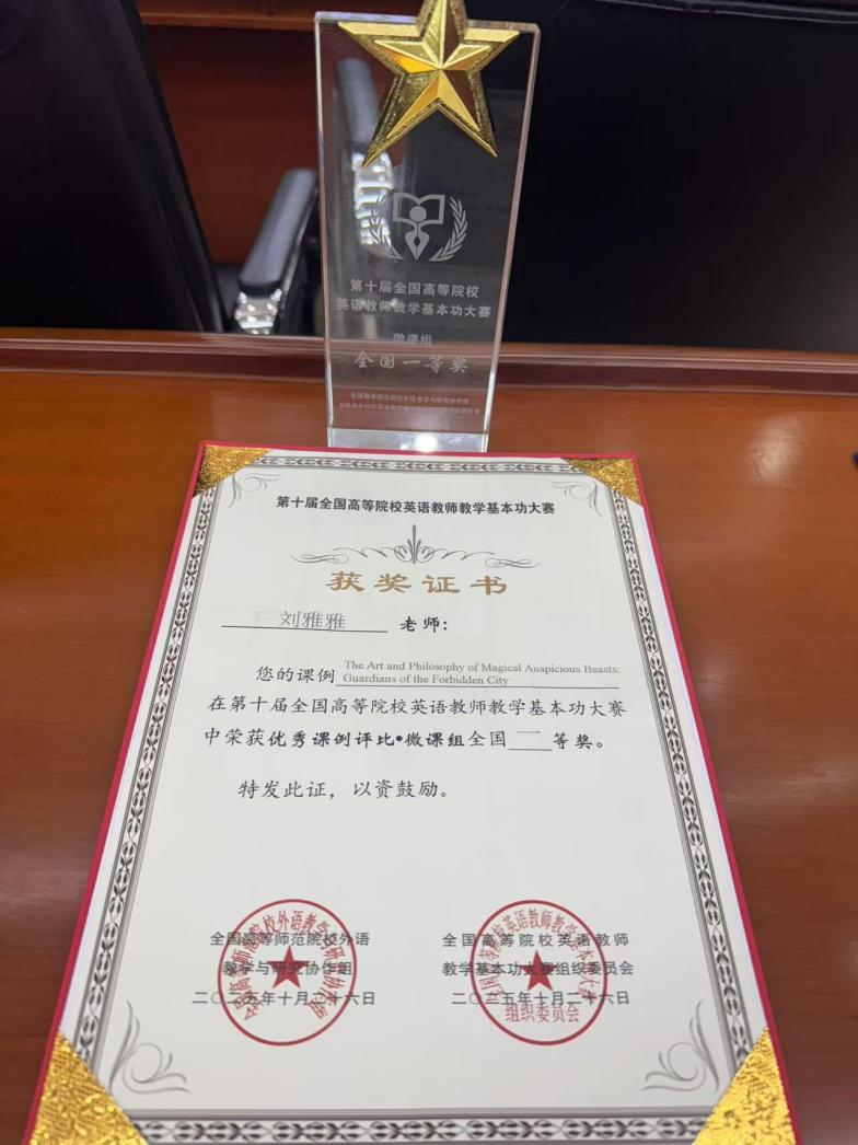 西京网讯:10月25日-26日,2025年全国高等院校英语教学学术年会暨第十届全国高等院校英语教师教学基本功大赛复赛在南京举行。我校外国语学院教师刘雅雅、孙圆媛分别获得微课组和说课组全国一等奖,辛豆老师获说课组全国二等奖。
