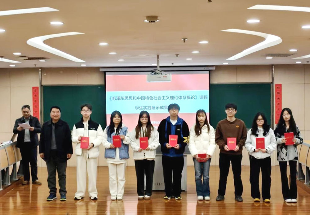 为激励学生参与课程实践,马克思主义学院对2023级本科生实践展示优秀成果进行表彰。网络与新媒体2301班范凯琪等50人获一等奖,应用化学2302班吴倩等64人获二等奖,产品设计2301班朱佳琪等79人获三等奖。学院领导为获奖学生颁奖。