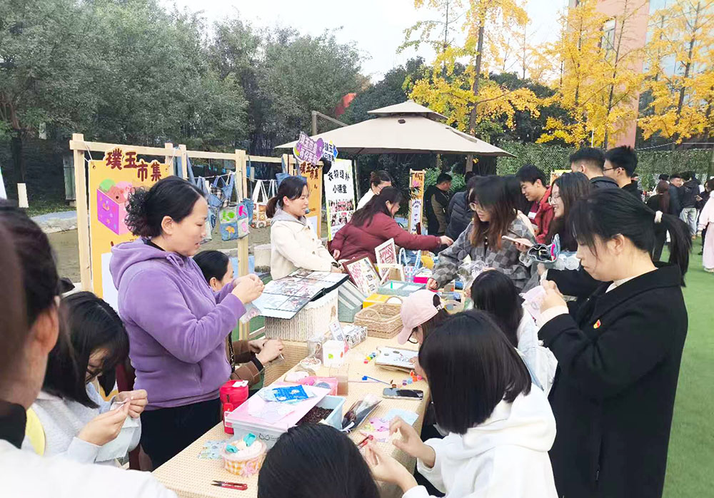 学校常态化开展“校园大扫除”“烹饪小课堂”“维修小课堂”“缝补小课堂”“花艺工坊”等实践项目,提升学生基本生活技能,使劳动成为日常校园生活的重要组成部分。依托自然节气变化,开展“落叶美育·劳动创作”、“手绘树洞”等活动,引导学生在落叶清扫、整理与景观造型创作中实现劳动与美育的融合,在璞玉市集中售卖自制手工作品,并以创意表达在校园留下独特印记。举办“二十四节气作品设计大赛”,组织学生围绕节气文化进行素材采集、手工制作与艺术呈现,在创作过程中深化对劳动智慧与传统文化的认知。
