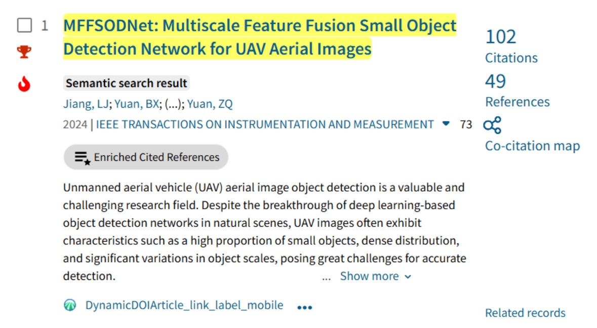 无人机图像检测研究入选ESI高影响力论文
