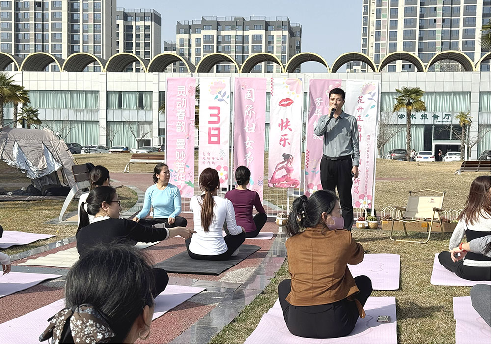在校工会与校妇联联合举办的手工非遗布艺包制作活动中,女教职工在动手操作中体验传统手工艺的魅力。教师三分会在图书馆前草坪组织开展“灵动春韵,曼妙芳华”瑜伽操活动,帮助女教职工在春日中放松身心、舒缓压力。各分工会还结合实际,组织召开主题座谈会,围绕工作与生活进行交流分享。