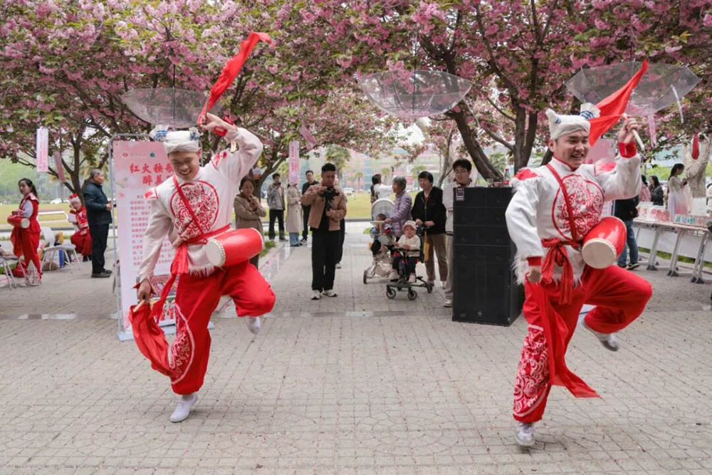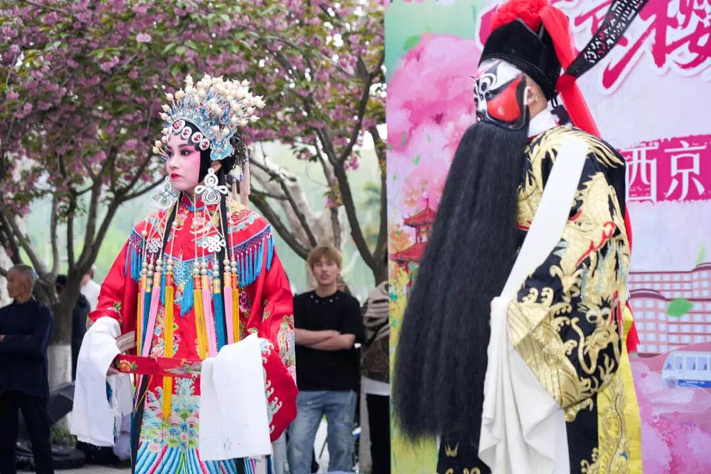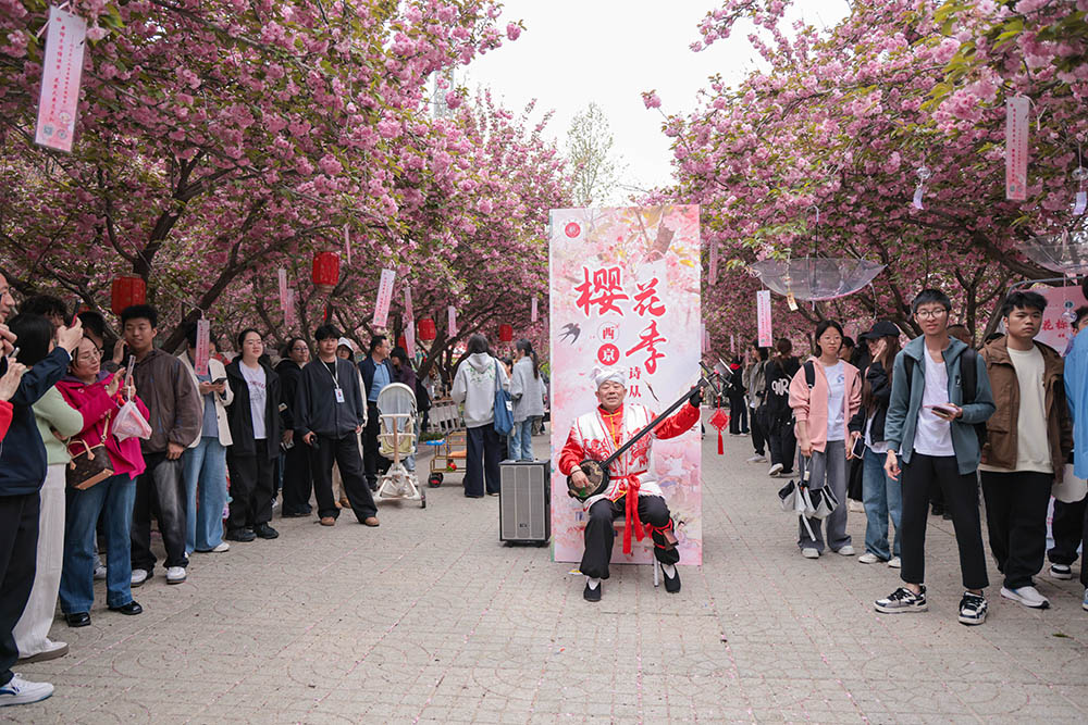 数字空间之上是青春与科技的文化共鸣,花海深处则是古韵与春色的温柔相拥。当西安何家营鼓乐社奏响千年古曲《园林好》时,千年前杜甫笔下“名园依绿水”的诗意穿越时空,与今日西京园的樱花交相辉映。景与声相融,人已在其中。