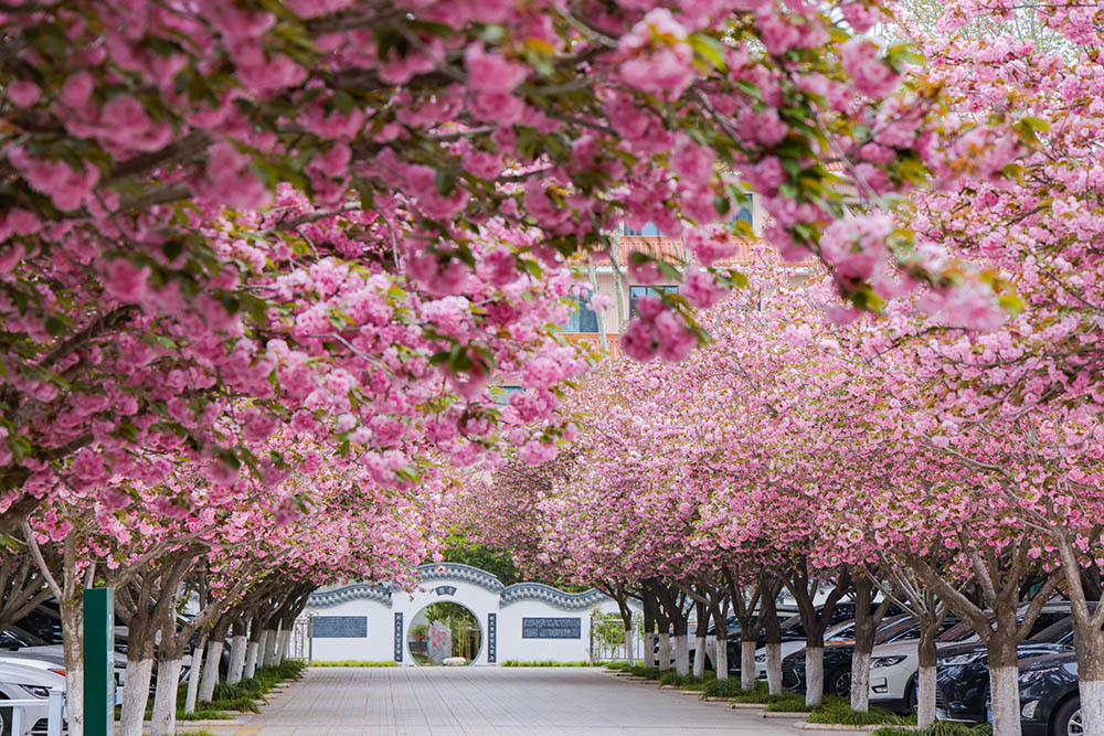 不远处,几位同学围在马克思主义学院教师李卫身边,听他讲解“樱”字在古典诗词中的文化意蕴。“这个意象既写出花朵的轻盈娇美,也比喻人的美好年华”。李老师抬手拂过一枝低垂的花簇,娓娓道来:“樱桃与樱花本属同科,两千年前,樱桃就已进入皇家宫苑,成为宫廷珍果。到了唐代,樱花种植从宫廷庭院走向田野村舍,李商隐笔下‘樱花永巷垂杨岸’,正是当时春日盛景的生动写照。”他顿了顿,望着眼前花海继续说:“中国是樱花的原生地之一,观赏樱花的种植与文化审美最早源于中华大地,后来通过文化交流传到朝鲜半岛、日本等地。文人墨客赋予樱花的风骨与诗意,根脉深植在我们这片土地上。”