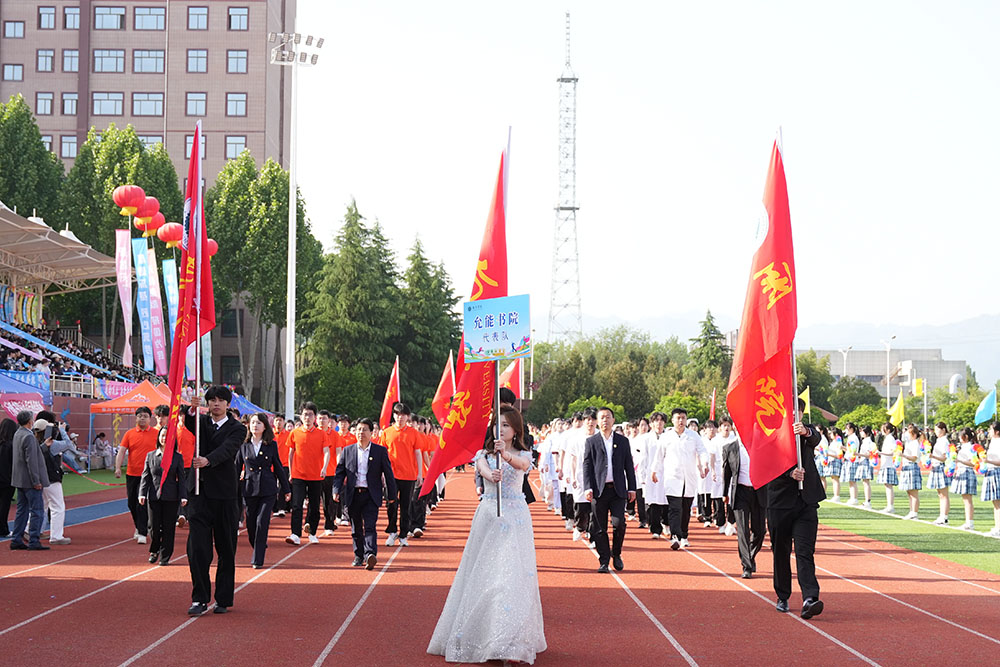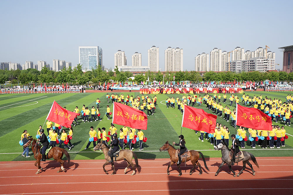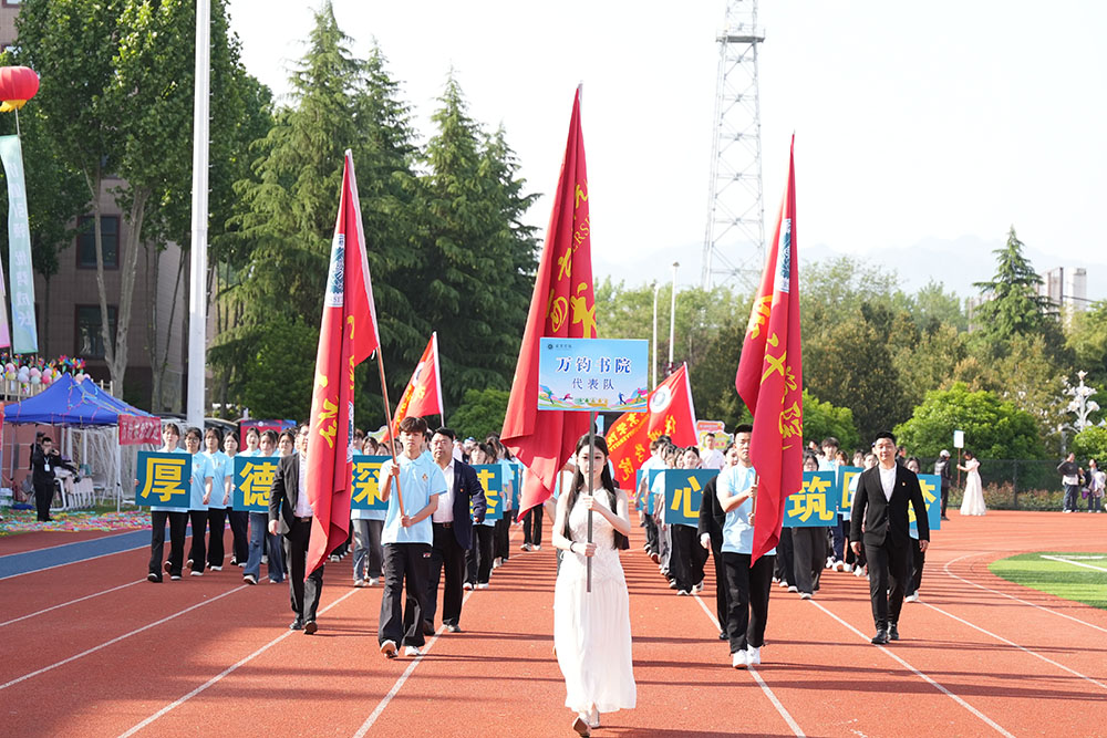 文体表演环节将开幕式气氛推向了高潮。万钧、行健、至诚、创业、博雅、允能书院分别以“文韵传承”“策马赴山海”“龙行万里”“数智丝路”“骏马逐梦”“允能舞韵”为主题,将体育与美育深度融合,用刚柔并济的动作与匠心独运的编排,为全校师生献上了一场视觉与文化交融的盛宴,生动诠释了“运动美”的核心素养内涵。