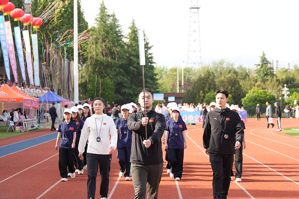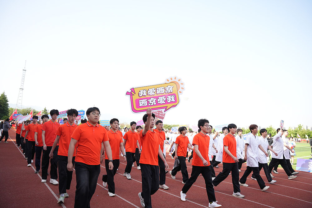 上午8时30分,伴随着激昂的《运动员进行曲》,开幕式正式拉开帷幕。国旗护卫队迈着铿锵有力的步伐率先入场,他们英姿飒爽、目光如炬,守护着鲜艳的五星红旗走过主席台。紧随其后的是裁判员方阵以及万钧、至诚、行健、创业、博雅、允能六个书院代表队依次入场。他们精神抖擞、意气风发,各书院方阵结合专业特色与“一院一品”文化,通过创意十足的队列变换与道具展示,充分彰显了西京学子“敢拼搏、善协作、勇超越”的昂扬风貌。