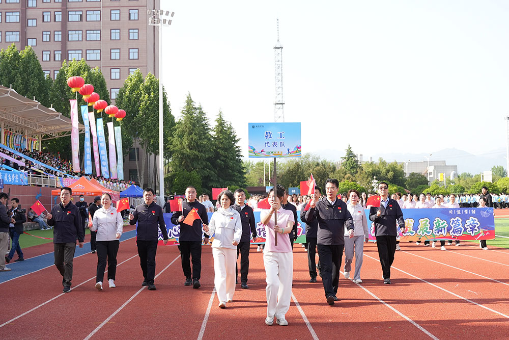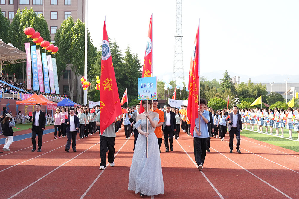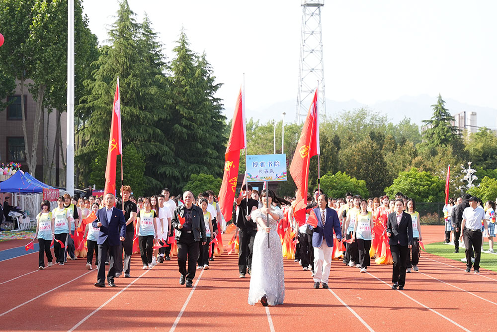 校长任芳、党委书记张军政、常务副校长苏明,副校长谢明、郭建新、刘鹏、程永清,工会主席师娟娟、华煜公司总经理唐娣芬,财务总监马少民等校领导与数千名师生齐聚一堂,共同见证这场融汇体育精神与青春活力的校园盛典。