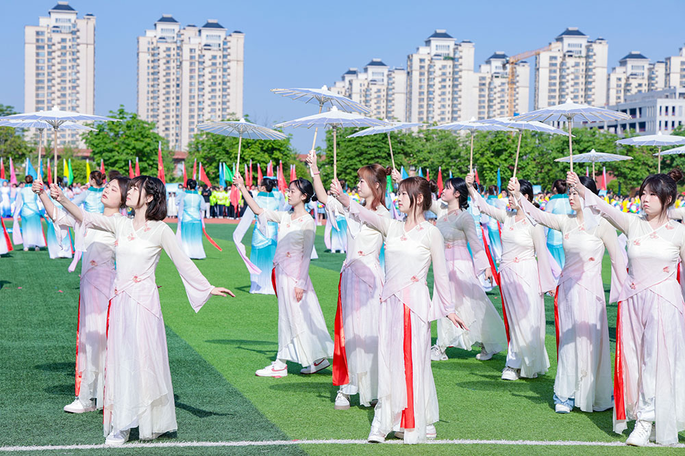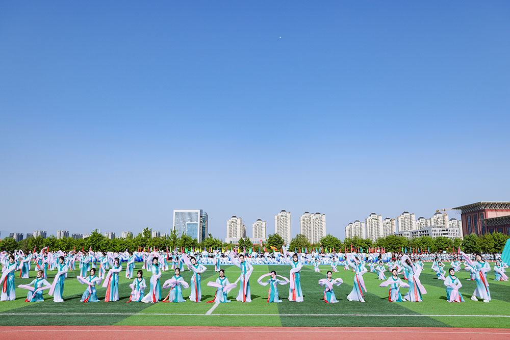 如果说全员参与是运动会的基础底色,那么将中华优秀传统文化融入体育展演,则为这场体育盛会铺就了深厚的精神底色。在绿茵场上,千年文脉与青春律动相互激荡,体育与美育完成了自然而深沉的交汇。