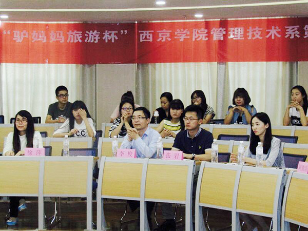 经过初赛选拔,来自管理技术系的七名选手进入本次决赛。决赛由“驴妈妈”西安大区副总经理、陕西景域集团董事长张岩先生,“驴妈妈”旅游发展中心高级经理张丹女士,管理技术系主任李俊,以及旅游管理专业老师谢军梅、刘倩洁、孙凤、徐萍、冯笑担任评委。