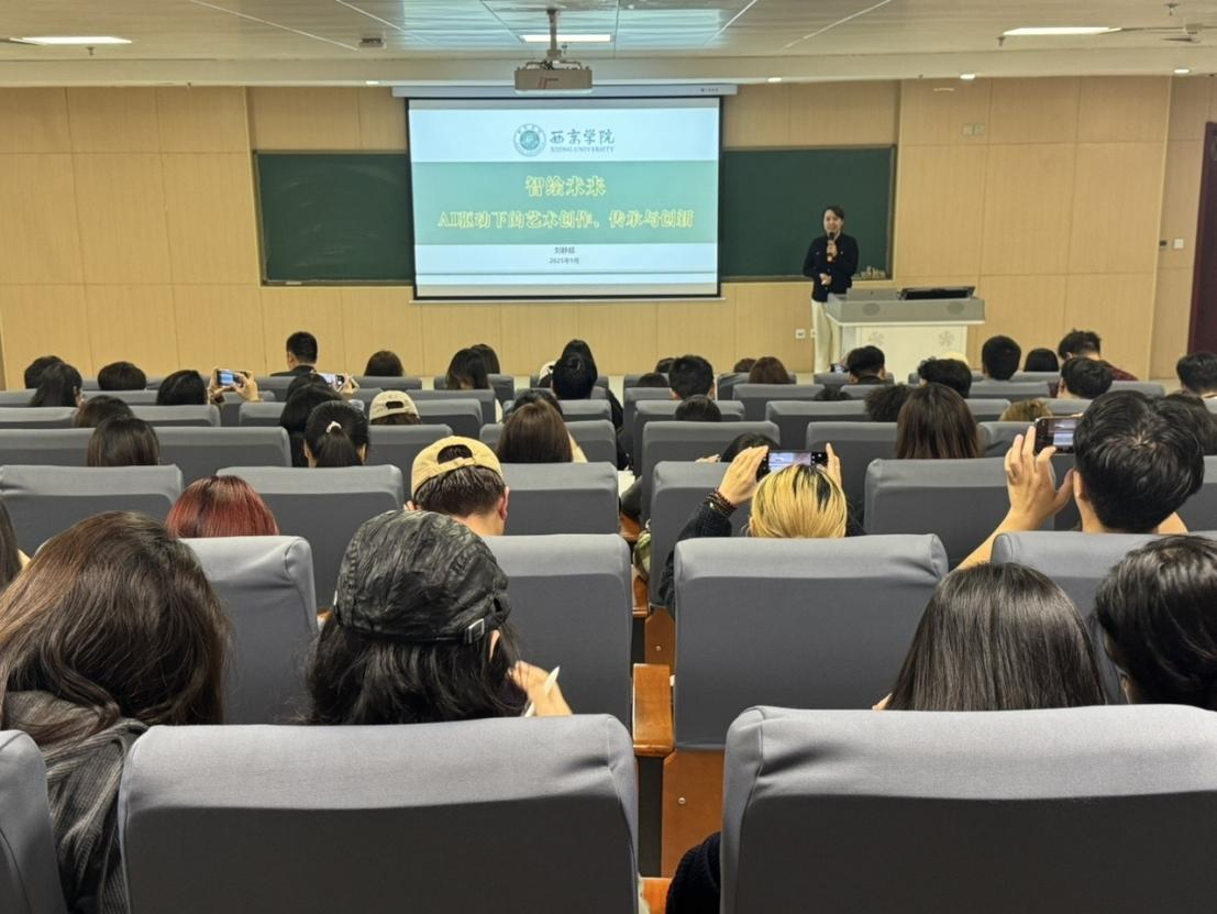 为传承科学家的宝贵精神财富,激励青年学子立志科技报国,中心在图书馆101报告厅举办了两场高质量主题讲座。第一场讲座《智绘未来——AI驱动下的艺术创作、传承与创新——一场跨越人机的美学对话》于9月24日邀请计算机学院刘静超副教授主讲,从AI技术发展态势解析,AI对产业影响的分析,AI的应用实践等入手,深入剖析科学精神内核,并结合国家科技创新部署阐述了新时代弘扬科学精神的重要性,约150名师生现场参与。