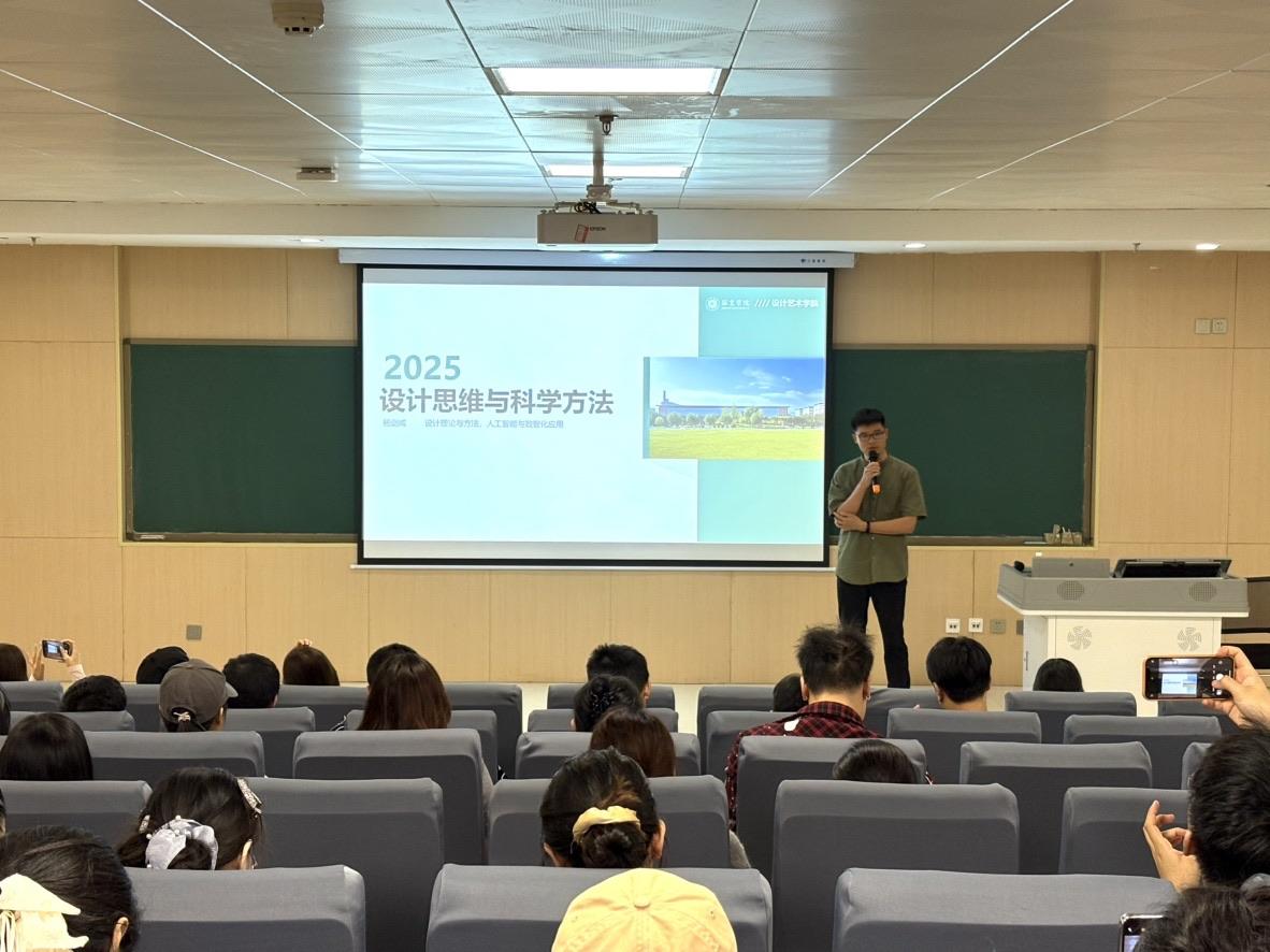 第二场讲座《创新思维与设计未来》于9月25日邀请设计艺术学院高级工程师杨剑威主讲,分享其在人工智能、新材料领域的创新实践,讲解设计思维在解决技术问题中的应用,约150名师生现场参与。两场讲座角度互补,深刻触动了听众,激发了学生的专业学习热情和科技报国志向。