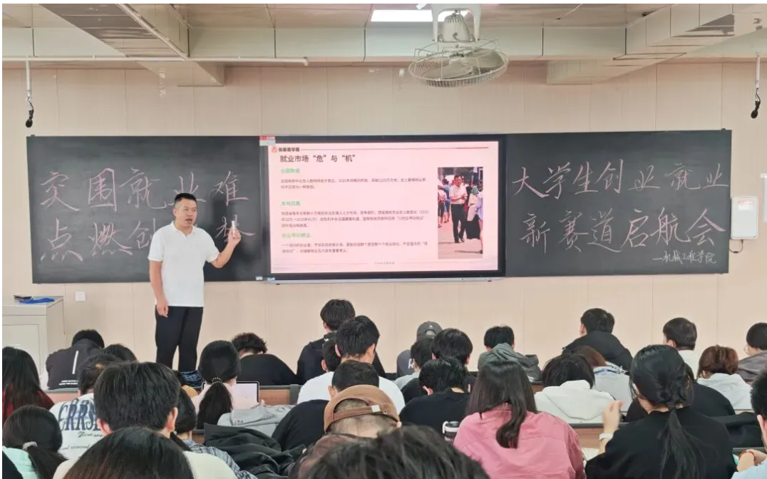 为切实破解学生就业创业难题,搭建高质量就业创业指导平台,近日,机械工程学院在3619教室举办万钧创业大学堂活动。活动特邀西安市创业导师、就业指导师岳冰老师作为主讲人,为全体毕业生作“突围就业难,点燃创业梦——大学生创业就业新赛道起航”主题讲座。