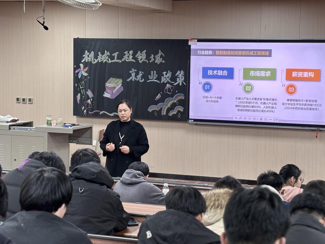 ——心理护航,助力学生学业成长。学院注重学生的心理健康教育,通过举办心理健康主题讲座、开展个体咨询等方式,帮助学生缓解学业压力,树立积极向上的心态。针对2025级学生,学院举办了“破解大一迷茫:用积极心态筑牢学风根基”主题报告会,邀请心理健康中心主任闫纯苏为同学们提供情绪调节技巧和学业规划指导,助力学生顺利度过入学适应期,让同学们以更加饱满的热情和积极的心态投入到学习中。