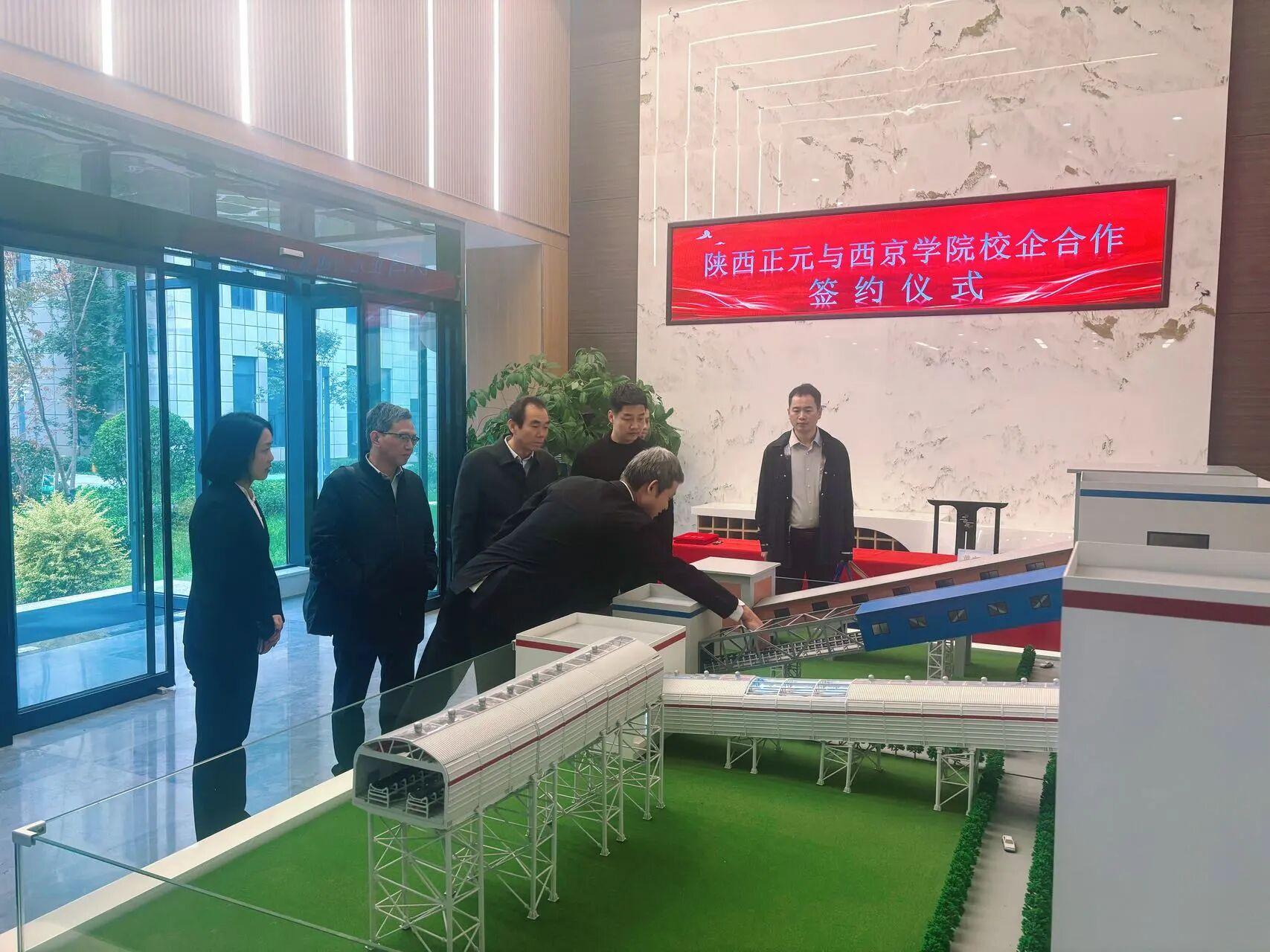 我校副校长黄文准、土木工程学院院长傅少君一行,在陕西正元智慧装备有限公司工作人员陪同下先后参观一楼栈桥模型区与二楼研发设计办公地。研发部部长彭宝宁讲解模型技术要点与研发实力,我校对公司实践平台价值高度认可,认为与学校人才培养目标高度契合。