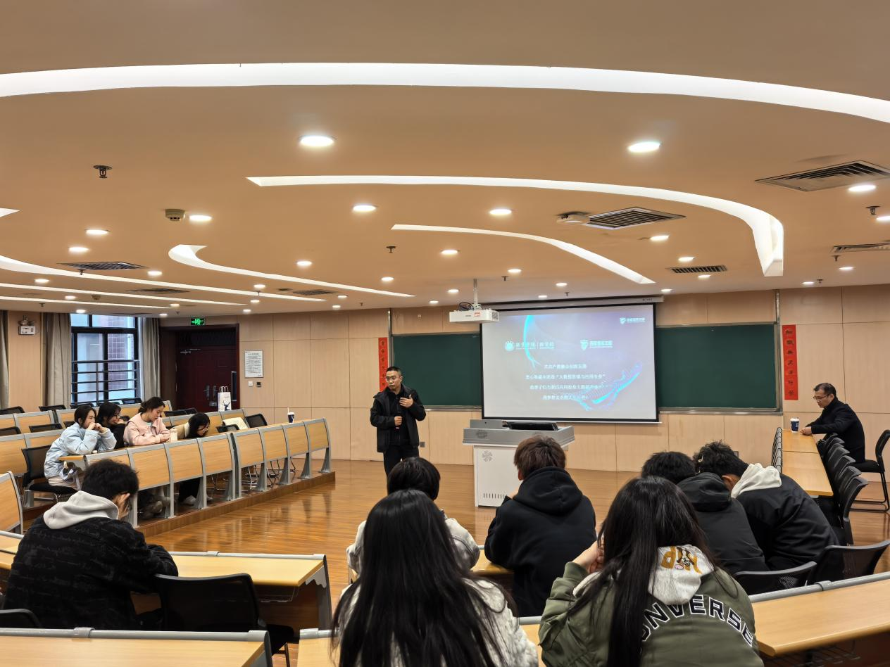 大数据管理与应用专业举办“企业导师讲专业” 专题报告会,校企合作单位海康威视西安雪亮项目管理有限公司总经理刘伟杰以《让数据脱虚入实,以数赋能》为题分享行业洞见。