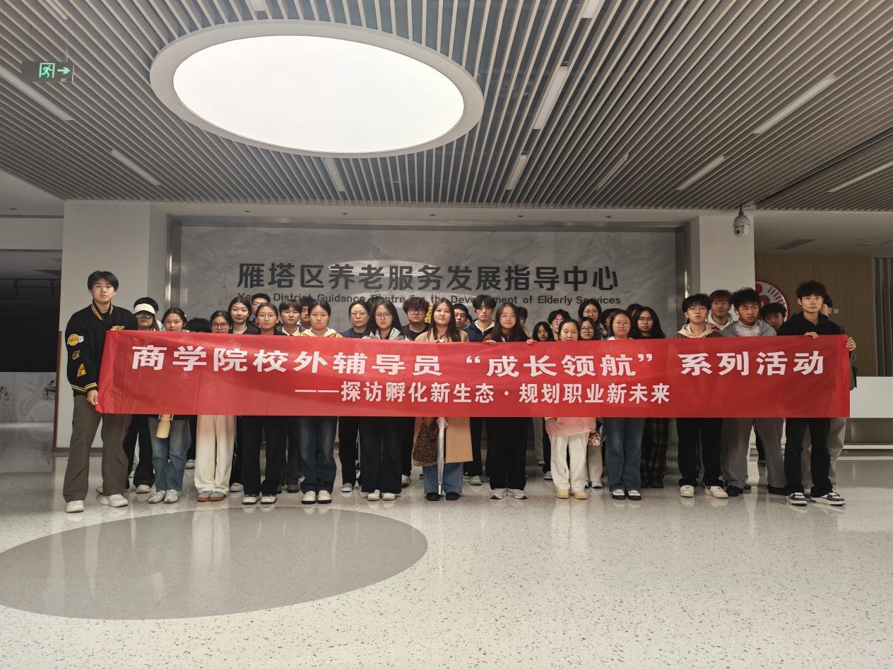 辅导员祝康富与校外辅导员刘波共同带领2025 级大数据管理与应用、金融科技专业学生代表,先后走进雁塔区社会组织培训孵化基地与雁塔区养老服务发展指导中心,开展 “校企互访・职引未来” 社会实践研学及 “决胜青春赛道・点亮职业梦想” 校外主题班会,将教学场景延伸至智慧养老产业一线。