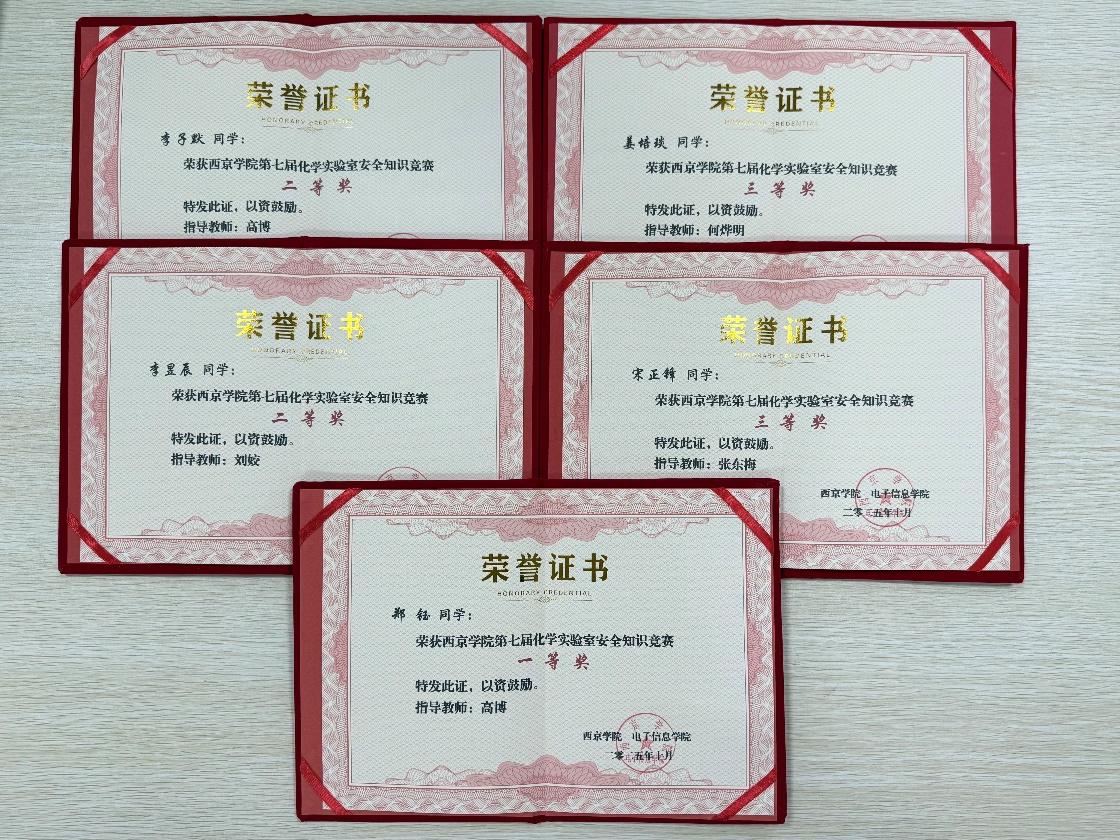 本次考试还同步评选出三类奖项:新能源材料与器件专业的郑钰同学荣获一等奖,应用化学专业的李子默、李昱辰同学获二等奖,新能源材料与器件专业的宋正锋、光电信息材料与器件专业的姜培琰同学获三等奖。后续,指导教师将在实验课前为获奖同学举行荣誉证书颁发仪式,进一步激发全体新生的学习热情。