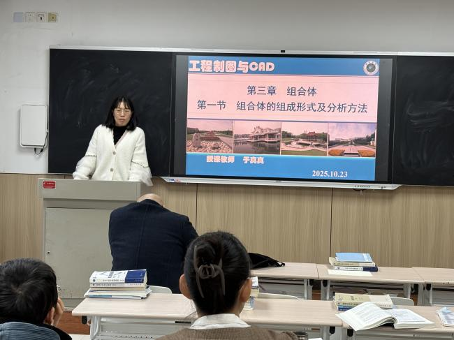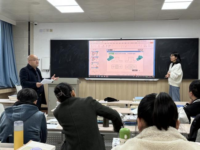 卓越教师于真真副教授则围绕《工程制图与CAD》课程的《组合体》章节进行教学设计展示。她以工程实际需求为导向,详细阐述教学环节的设计思路,重点突出对学生专业技能与工程思维的双重培养。在教学方法上,她创新提出 “实物观察 — 软件建模 — 图纸绘制” 的递进式教学模式,并借助多媒体资源将抽象的知识具象化、直观化,为在场教师提供了极具参考价值的教学范例。