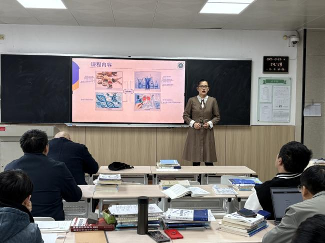 在课堂展示环节,两位优秀教师依次登台,呈现了高质量的教学示范。校级优秀教师张翠红副教授以《药学导论》课程中的《药物研发》章节为内容开展说课。她以清晰的逻辑梳理药物研发全流程,结合当前医药行业发展趋势明确教学目标,巧妙运用案例教学法实现理论知识与行业实践的深度衔接,同时将思政元素有机融入教学过程,有效激发学生的爱国情怀与科研责任感,充分展现了扎实的教学功底与丰富的教学经验。