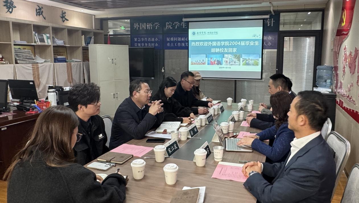 11月11日10:30,西京学院外国语学院校友座谈会暨校外辅导员聘任仪式在3号教学楼党员活动室举行,活动旨在“搭建校友与学院沟通桥梁,凝聚校友力量,助力学生成长”。外国语学院党委书记常晓娟、校友工作办公室徐晖、辅导员代表及京师西安律所校友团队共同参与。