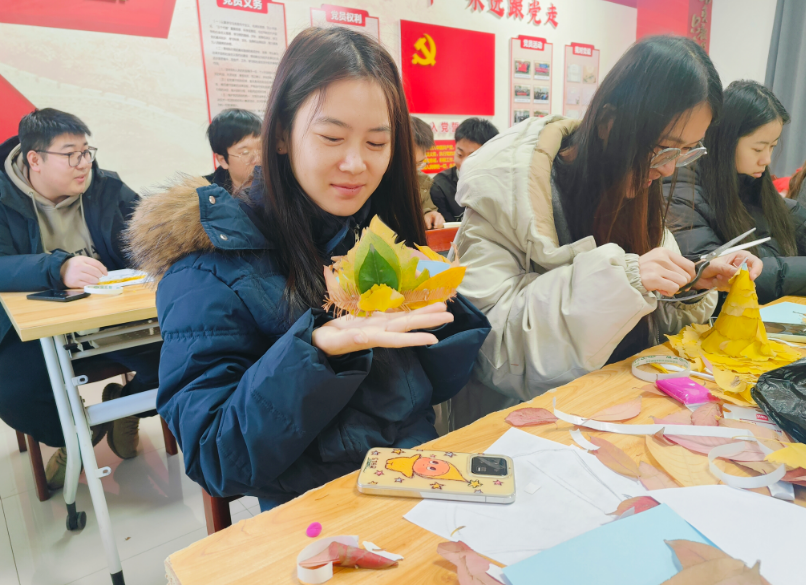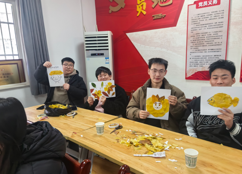 本次活动以“自然创意”为切入点,社区协同西京学院电子信息学院党员组织大学生志愿者收集秋日树叶,通过剪、贴、拼、画等多种方式,将普通的落叶转化为精美的装饰画、书签、摆件等手工作品。活动过程中,志愿者们发挥创意与耐心,挖掘树叶的独特形态与色彩之美,在动手实践中感受自然馈赠的乐趣,培养环保意识与创新思维。