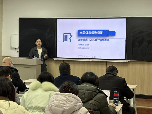 应用化学教研室张翠红副教授带来《药物与生活》的说课展示,凭借深厚的专业积淀、生动易懂的讲解思路,将抽象的药物知识与日常生活场景紧密结合,既彰显了专业深度,又突出了公选课的科普性与趣味性,充分展现了扎实的教学功底;新能源材料与器件教研室马晓宁老师聚焦《专业综合实验》课程,围绕甲基铵碘化铅钙钛矿的合成实验展开详细展示,条理清晰地讲解了实验原理、操作流程及安全注意事项,凸显了实验教学的规范性、严谨性与实用性;光电信息材料与器件教研室王付梅老师以《半导体物理与器件》中的MOS场效应晶体管为核心进行说课,逻辑缜密、重点突出,精准把握知识点内涵,展现了对专业课程的深刻理解与扎实掌握;材料与能源科学技术研究院陆银夫博士带来《电极材料的合成与优化》的首次课试讲,课件制作精美规范、备课充分细致,条理清晰地呈现了课程核心内容、教学思路及重难点,展现了积极进取的教学态度。
