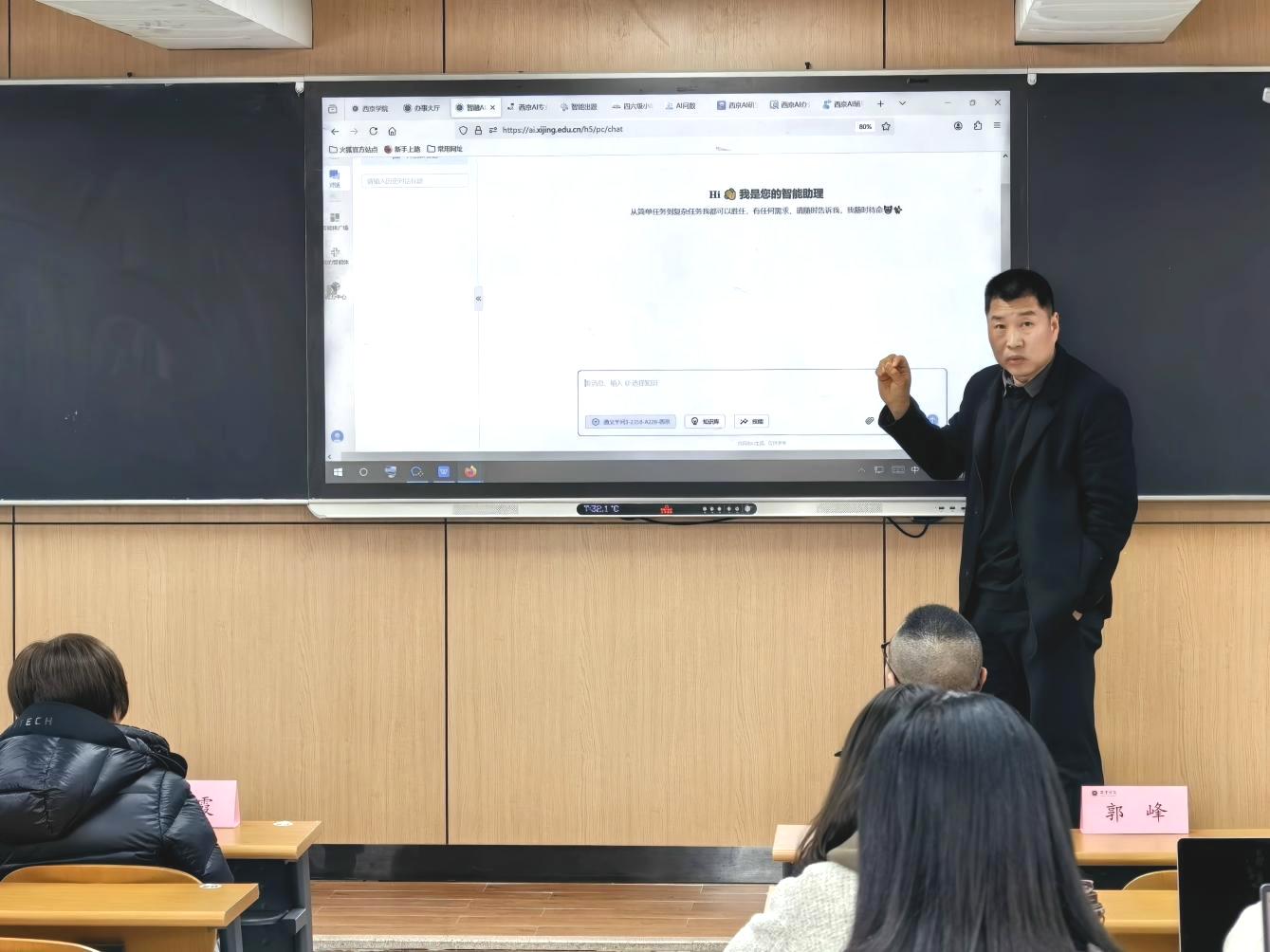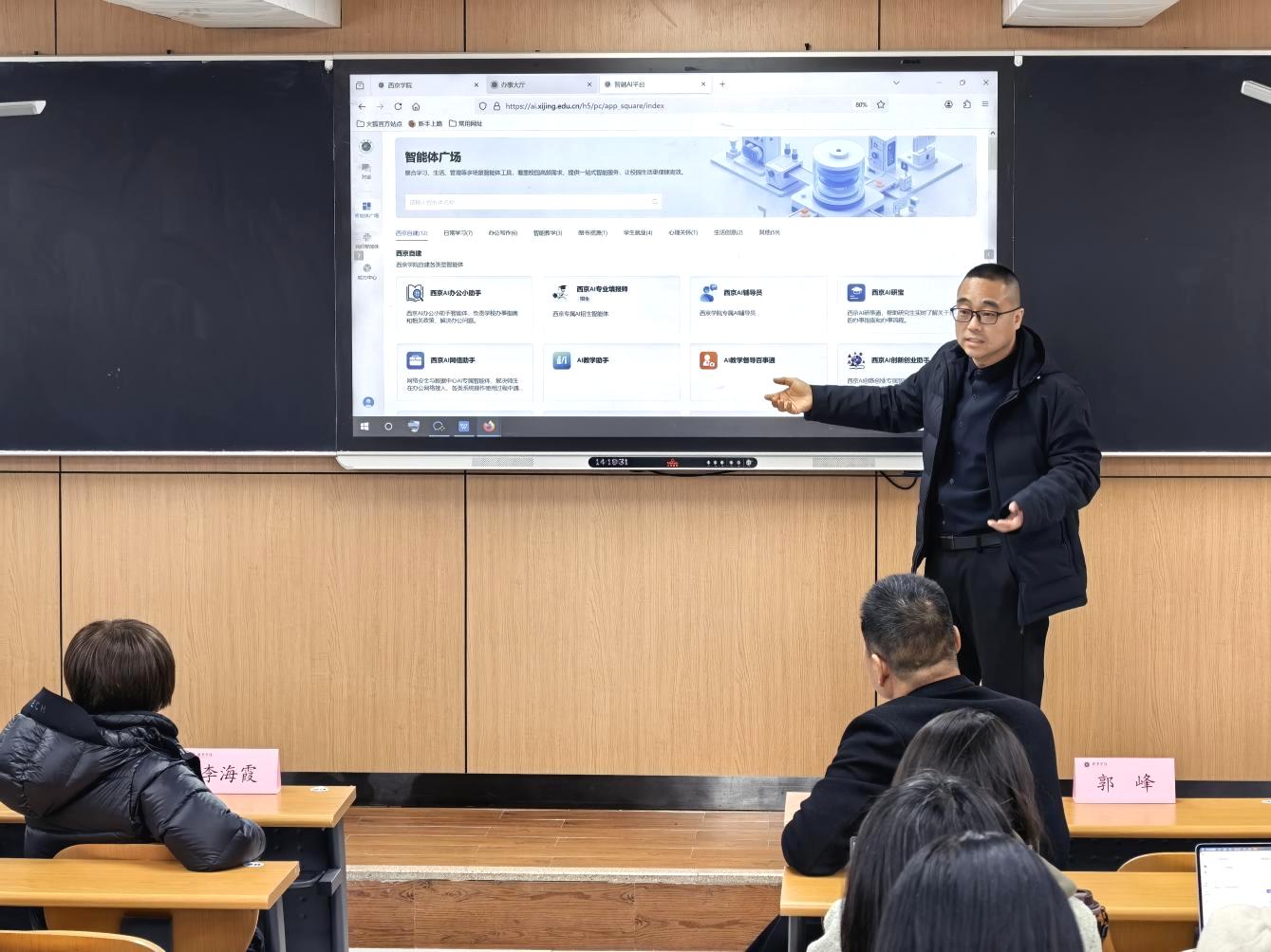 本次培训重点介绍了学校自建的人工智能服务平台——西京智融AI平台,该平台基于本地服务器搭建,具备三大核心功能:一是服务于全校师生的公共智能服务体,如AI辅导员、AI办公助手、AI智能教学、四六级小助手、AI面试官等;二是支持教师个人创建专属知识库智能体,实现个性化资料管理与智能问答;三是允许院系或职能部门建立部门级智能体,用于集中管理和响应常见事务咨询。平台通过对接校内OA系统、学生管理系统、规章制度文件库等多个业务系统,实现了对政策查询、科研奖励标准、课程安排、学生请假流程等高频问题的精准回答,避免依赖外部大模型带来的数据外泄风险。培训中还详细演示了如何从零开始构建一个智能体。