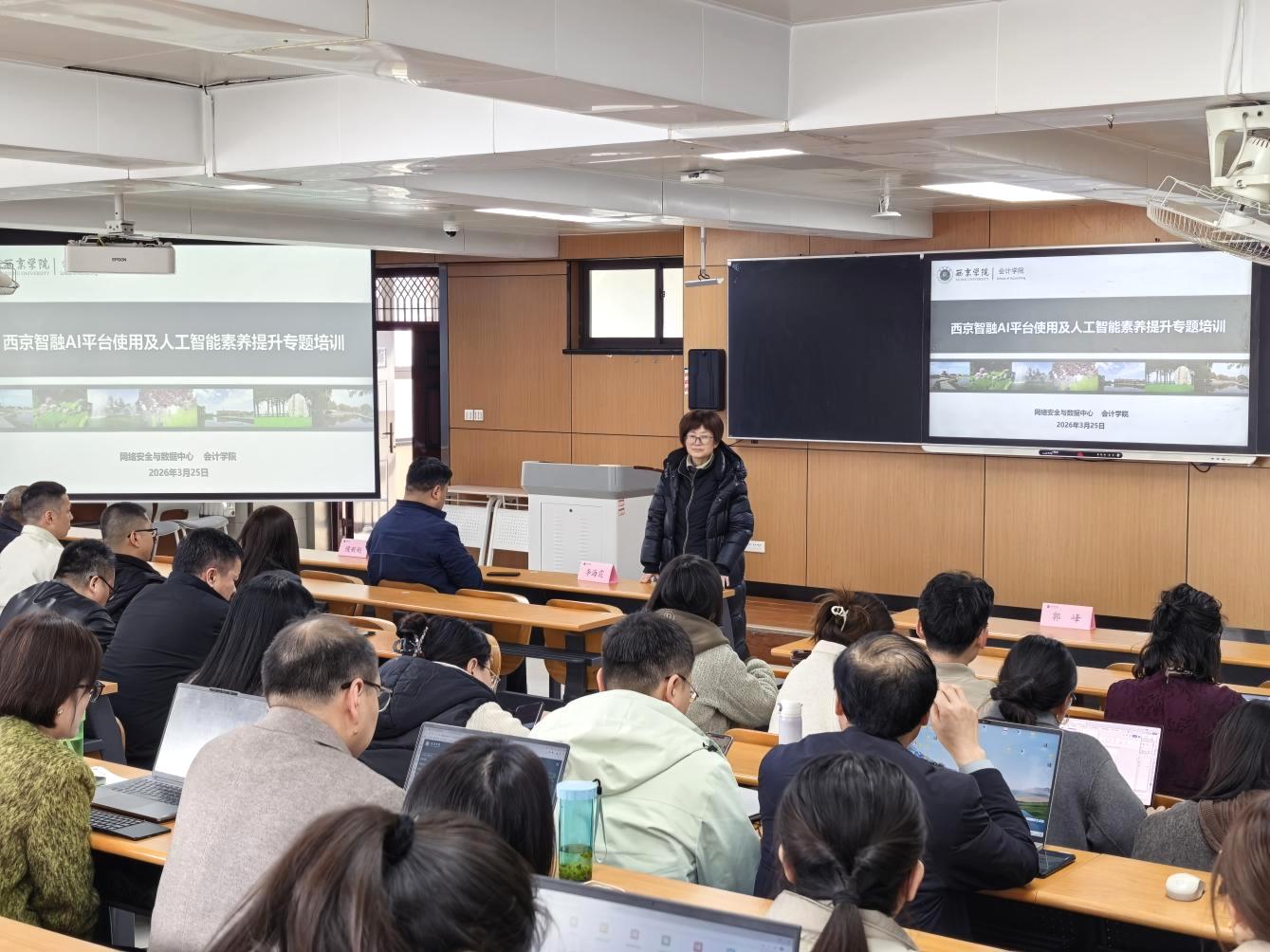 3月25日下午,会计学院邀请网络安全与数据中心康沛博主任、郭峰科长来我院开展西京智融AI平台使用及人工智能素养提升专题培训。通过现场讲解AI平台的功能应用、智能体创建方法及数据安全管理规范,旨在提高全员人工智能素养,提升工作效率,助力会计学院在教育数字化转型进程中迈出实质性一步。培训会由会计学院院长李海霞主持,全员教职工线下参加。