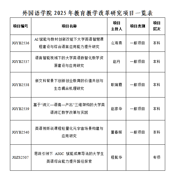 学院6项校级教改项目成功立项,为教育教学改革持续注入新动能;9项研究生教育质量工程项目获批立项。