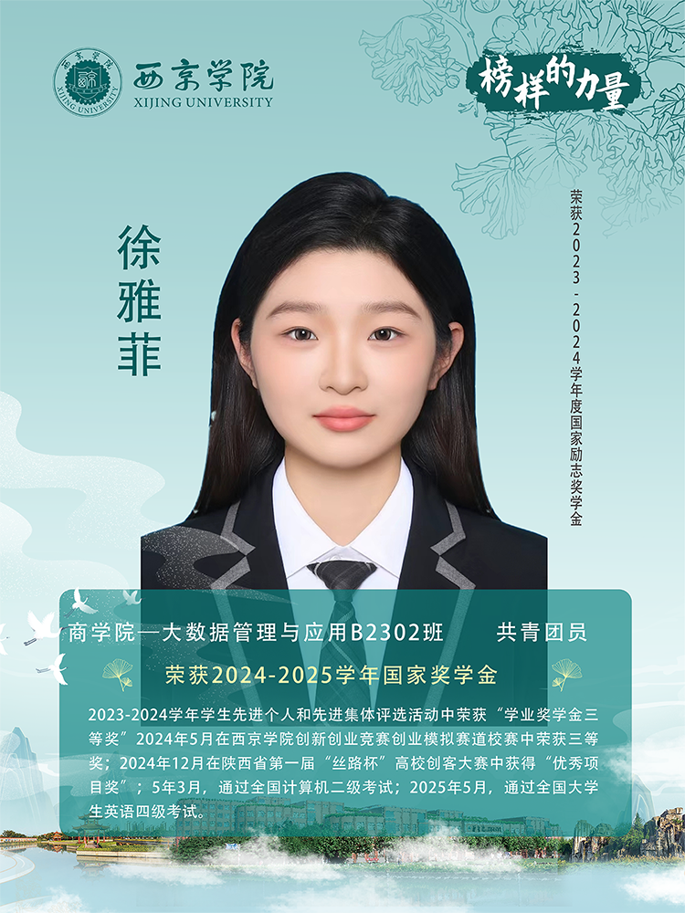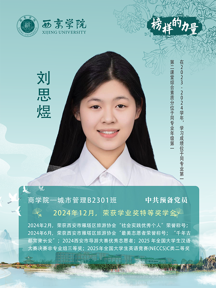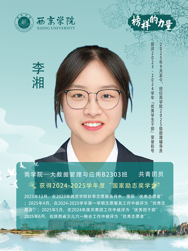 一群在奋斗中绽放的青春榜样 更新日期:2025年10月30日 信息来源:商学院 作者:何雨晨 编辑:尚磊磊 在西京学院,有这样一群学子:他们或于学业赛场勇攀高峰,或于志愿实践中热忱奉献,或在创新创业中激荡才智,或在学生工作中担当责任。他们中有国家奖学金得主,有竞赛奖项的揽获者,有志愿服务的先锋,也有全面发展的多面手。党员与团员身份的背后,是责任与担当;多项荣誉的取得,印证着不懈的拼搏。从专业学习到社会实践,从个人成长到集体贡献,他们以青春之我,诠释着奋斗与担当,展现了新时代大学生的蓬勃力量与昂扬风貌。 上一篇:刘思煜:“双料”第一 下一篇:谭礼涛:青春无悔之旅