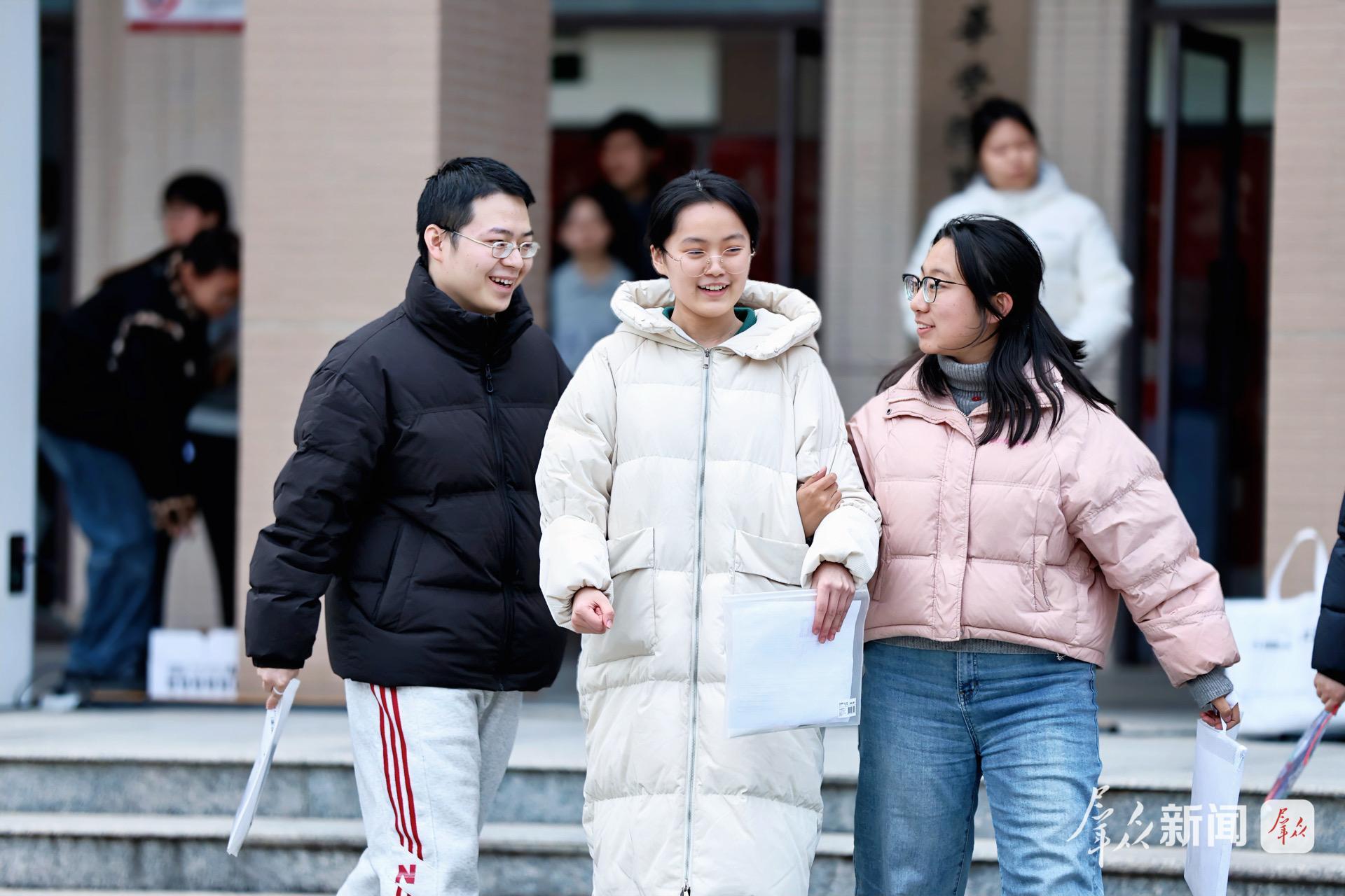 12月21日下午,研考结束后,几名考生开心地从西安培华学院考点走出。
