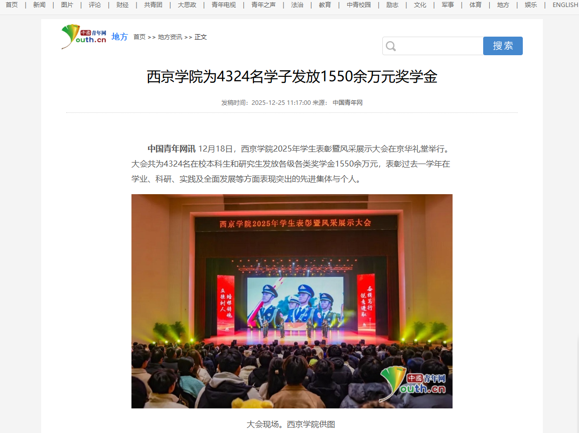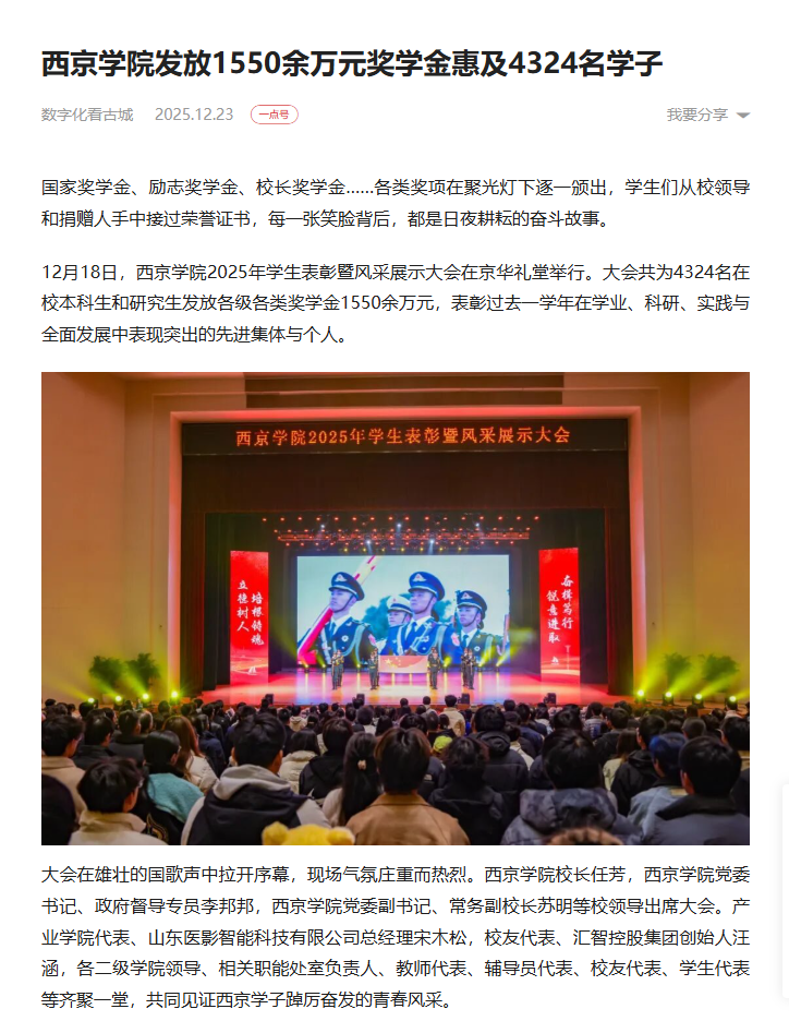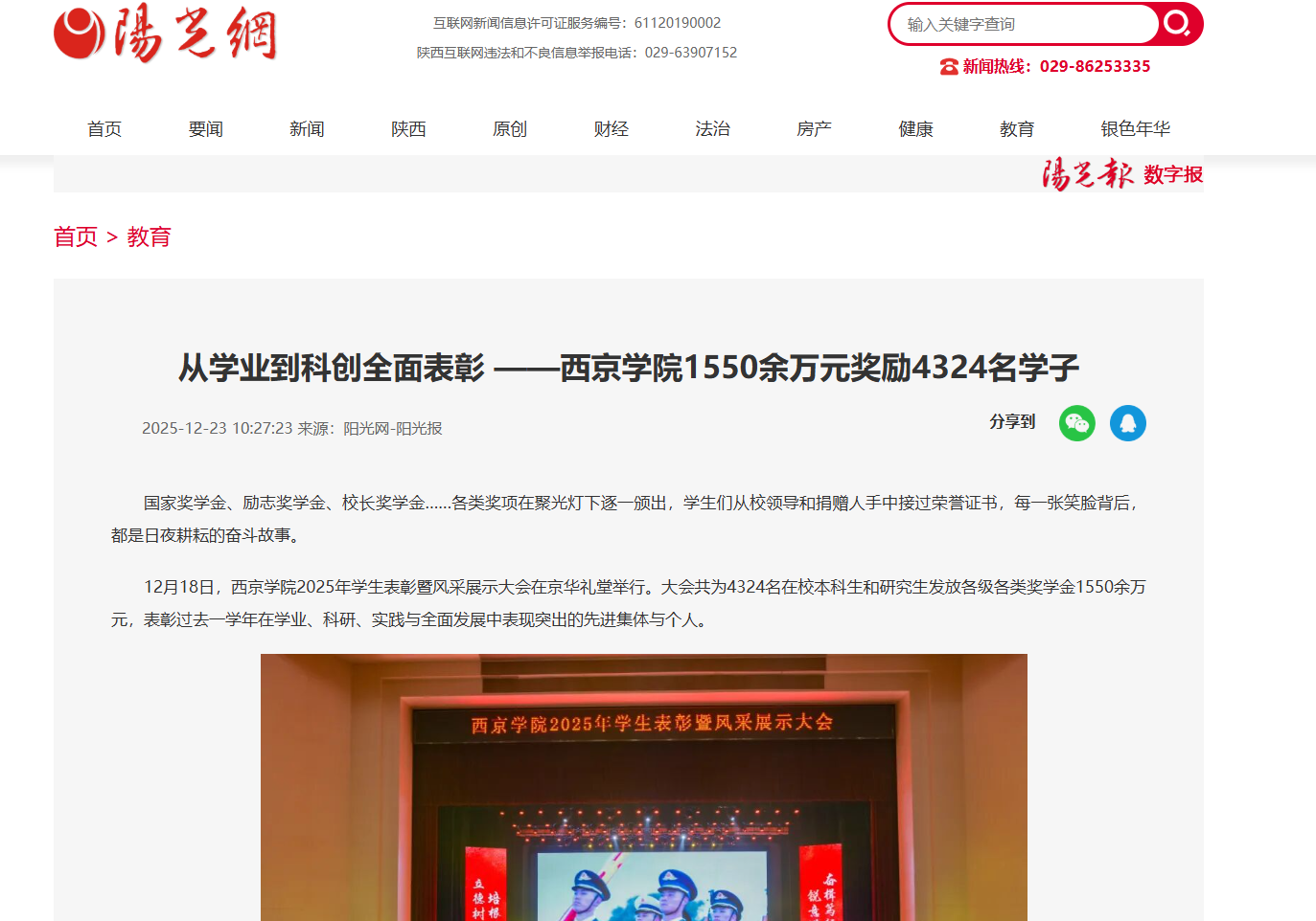 阳光报中国教育在线:发放1550余万元!西京学院奖学金体系覆盖学业、科研、实践等多维度