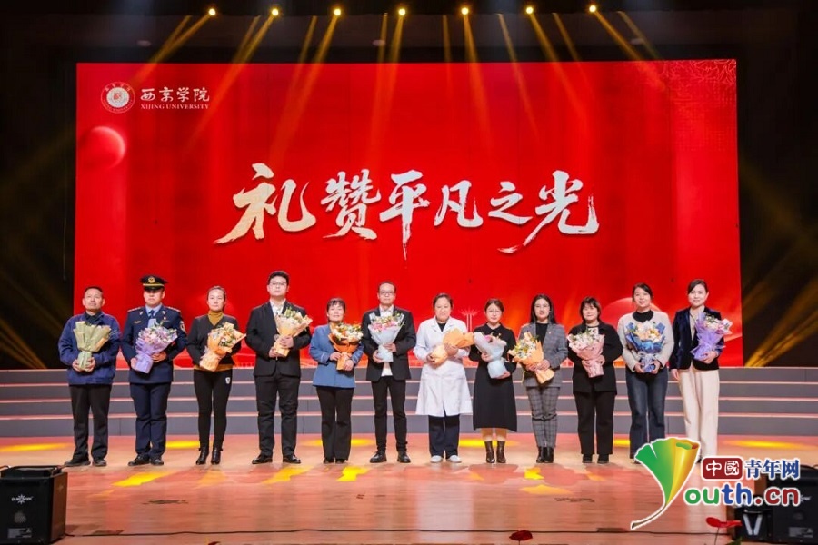 感恩是贯穿大会的温情主线。获奖学生代表向任芳等献花,也向自己的“引航恩师”郑重献上满载敬意的奖杯。学生代表还为在“三全育人”十大育人工作中辛勤付出的教职工代表献花,感谢他们用爱心、耐心与责任心为青春护航。
