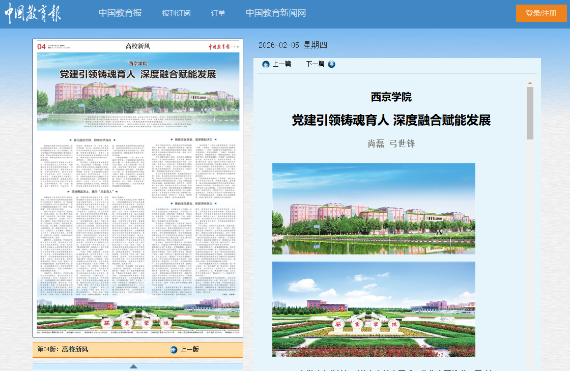 在加快建设教育强国的新征程上,西京学院将继续坚持党建引领,心怀“国之大者”,坚守为党育人、为国育才的初心使命,以更加坚定的信念、更加创新的实践、更加丰硕的成果,为谱写陕西新篇、争做西部示范、培养担当民族复兴大任的时代新人、助力中国式现代化建设贡献源源不断的“西京力量”。(尚磊 弓世锋)