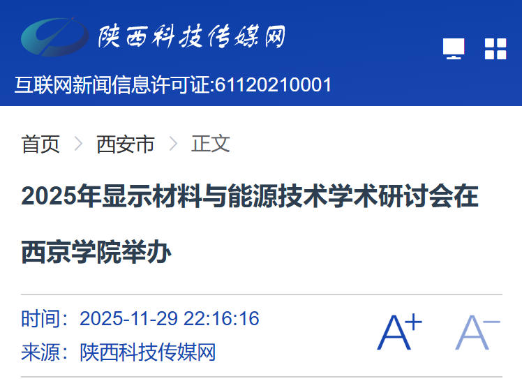 11月29日,2025年显示材料与能源技术学术研讨会在西京学院举办。来自西北工业大学、北京航空航天大学、北京科技大学等国内知名高校的50余位专家学者齐聚一堂,围绕显示材料与能源技术的前沿进展展开深入交流与探讨,为该领域的创新合作与产业升级注入强大动力。开幕式上,西京学院副校长黄文准代表主办方致辞。他指出,显示材料与能源技术作为推动社会信息化、绿色化发展的关键领域,具有至关重要的战略意义,同时也是学校重点....