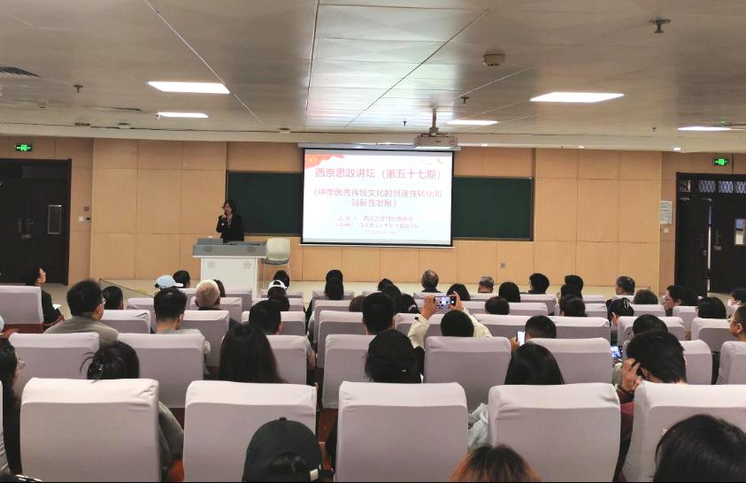 西京网讯:10月10日下午,第五十七期西京思政讲坛在图书馆102报告厅举行。西北大学马克思主义学院付粉鸽教授应邀作题为《中华优秀传统文化的创造性转化和创新性发展》的专题报告。报告会由马克思主义学院副院长杨宝国主持,马克思主义学院全体教师及外国语学院2025级学生代表参加。结合新时代中国特色社会主义文化建设形势,付粉鸽教授从四个方面展开论述:中华优秀传统文化的基本特点、历史定位、时代价值,以及创造性转化与创...