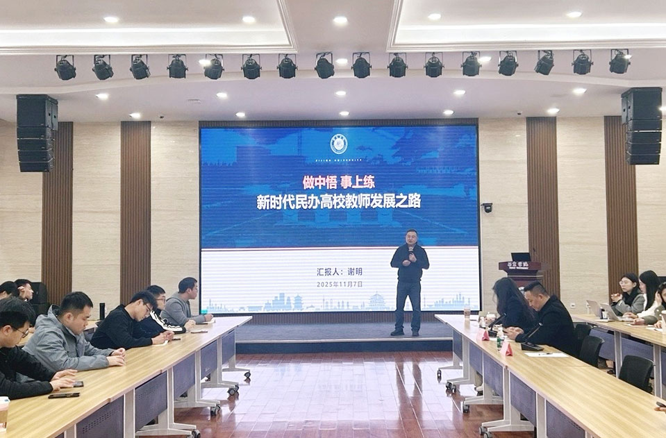 西京网讯:11月7日,我校举办新入职教师专题培训,60余名教师参与学习。作为新教师入职培训的重要环节,培训旨在助力青年教师快速适应岗位,推动学校师资队伍建设高质量发展。校长助理兼教务处处长、教师发展中心主任谢明教授担任主讲。谢明以《做中悟事上练——新时代民办高校教师发展之路》为主题展开分享。谢教授结合自身多年从教及管理经验,围绕新时代背景下民办高校教师的发展路径,分享了宝贵经验与实用建议,引导新教师...