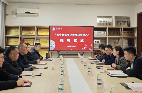 为深入挖掘、保护与创新传播关中地区丰富的民俗文化遗产,推动传播学科建设与地方文化发展深度融合,12月9日,传媒学院与关中民俗艺术博物院共建的“关中民俗文化传播研究中心”挂牌仪式在我院会议室举行。西京学院科研处副处长霍蛟飞、传媒学院院长张西静、副院长沈忠杰、关中民俗艺术博物院副院长王顺利、营销部总监王月桥、宣教部主任马晓青、院长助理王行健共同出席仪式。霍蛟飞首先代表学校致辞,对博物院团队表示热烈欢迎...