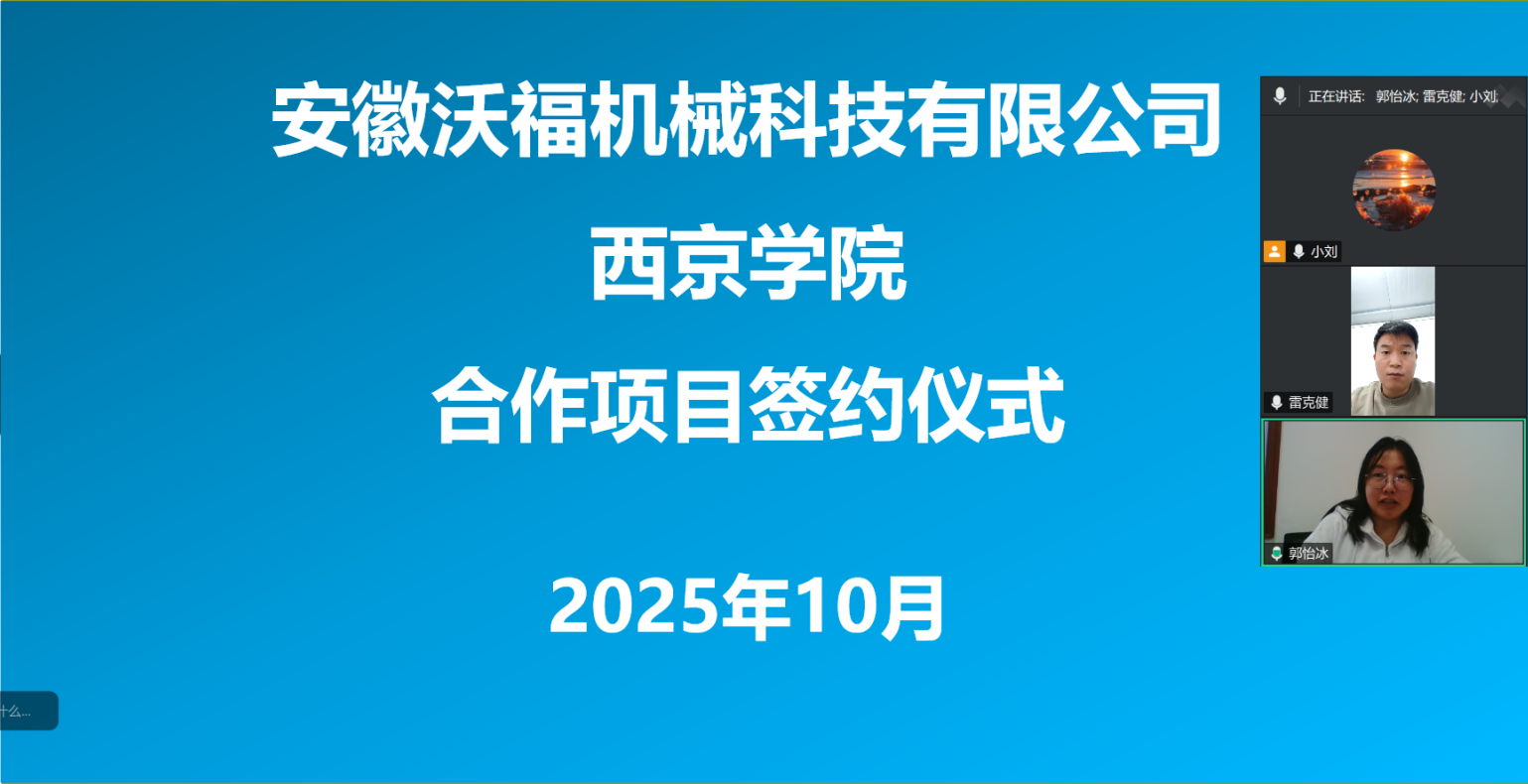 “基于机器视觉的卷章机智能品控系统技术开发”项目签约10月17日下午,计算机学院与安徽沃福机械科技有限公司就“基于机器视觉的卷章机智能品控系统技术开发”项目,举行了技术开发合同线上签约仪式。计算机学院项目负责人郭怡冰老师和安徽沃福机械科技有限公司项目负责人雷克健出席签约仪式。安徽沃福机械科技有限公司主要从事机械、电子设备的研发、生产等。本项目旨在新开发一套基于机器视觉的卷章机智能品控系统,实现卷章....